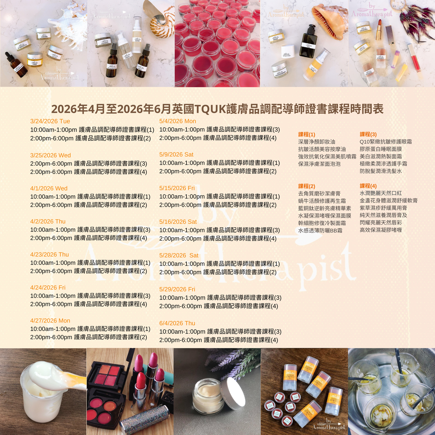 5. 教授調配製作以上產品,學生並可取回堂上所製作的作品